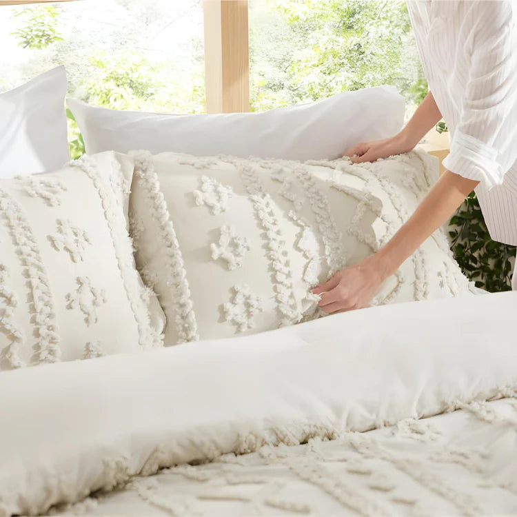 Why settle for less? See how our Boho Heirloom Embroidered Comforter Set outshines generic bedding with artisan stitchwork, all-season comfort, and easy care. The choice is cosy and clear.